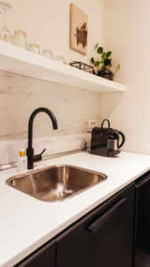 Pantry met koelkast, koffiefaciliteit en eenvoudige kookgelegenheid